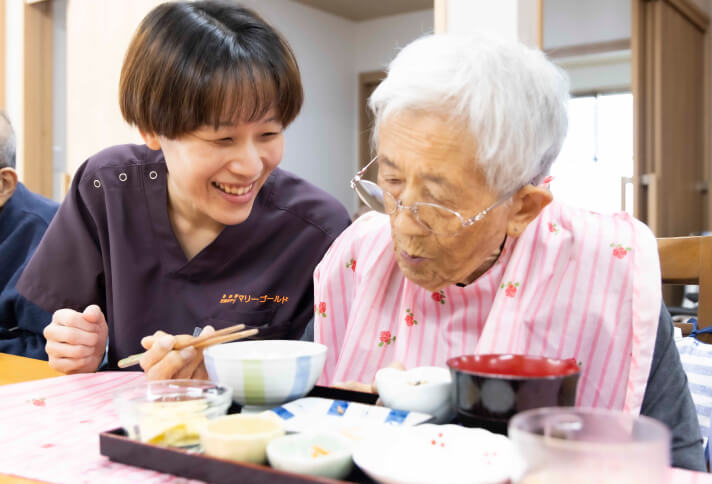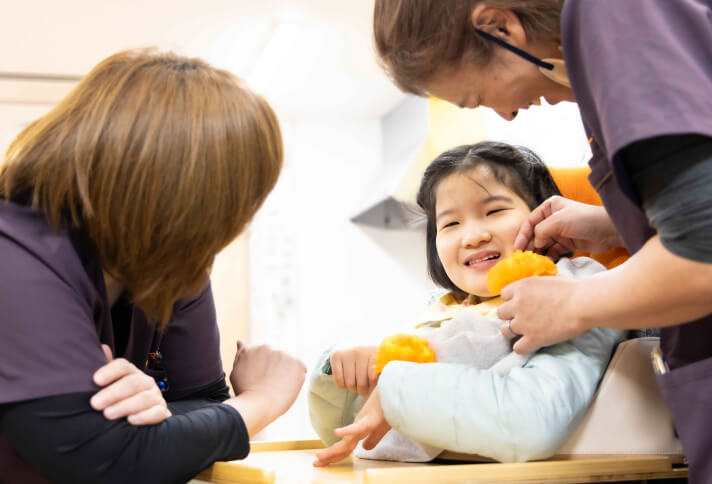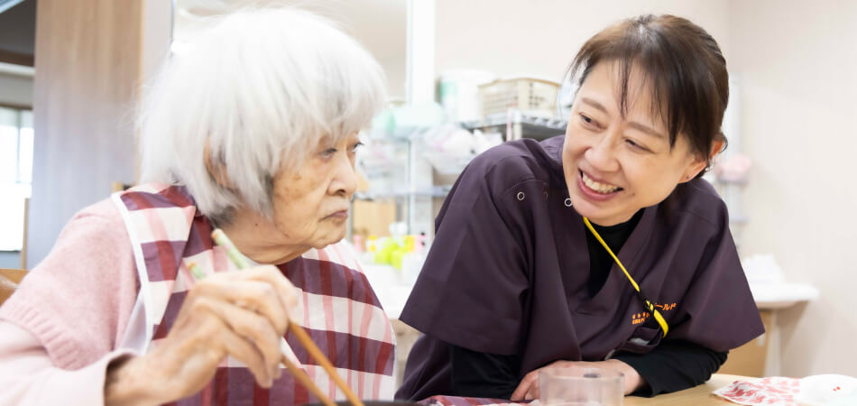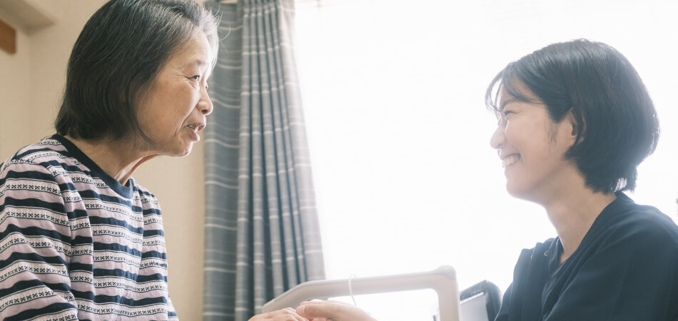 利用者様と会話するときは、物理的に目線をあわせて表情を見せるようなコミュニケーションを取っています。